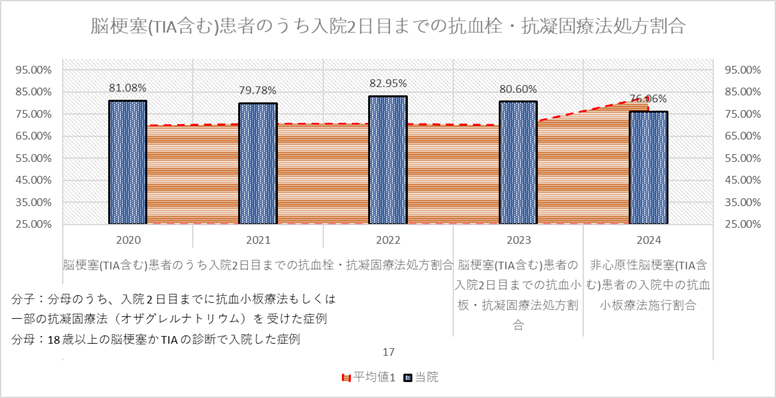 脳梗塞(TIA含む)患者のうち入院2日目までの抗血栓・抗凝固療法処方割合 |