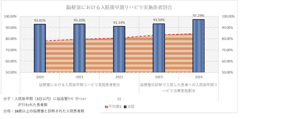 脳梗塞の診断で入院した患者への入院後早期リハビリ治療実施割合 |