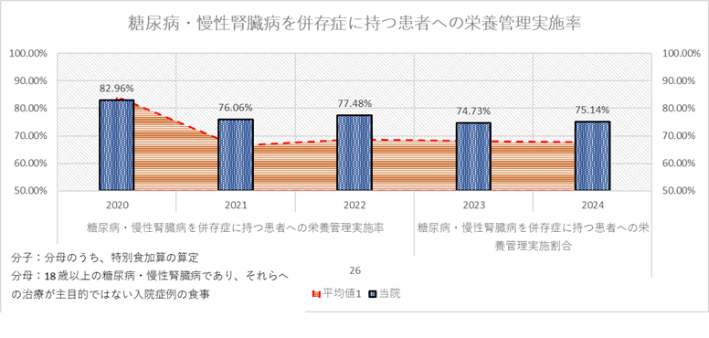 糖尿病・慢性腎臓病を併存症に持つ患者への栄養管理実施割合 |
