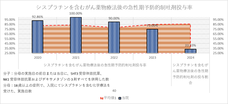 シスプラチンを含むがん薬物療法後の急性期予防的制吐剤投与率 |
